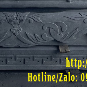 * Phần đế bình phong (cuốn thư): Được làm từ đá khối, thiết kế theo kiểu chân quỳ khắc hoa lá hoặc cung T.