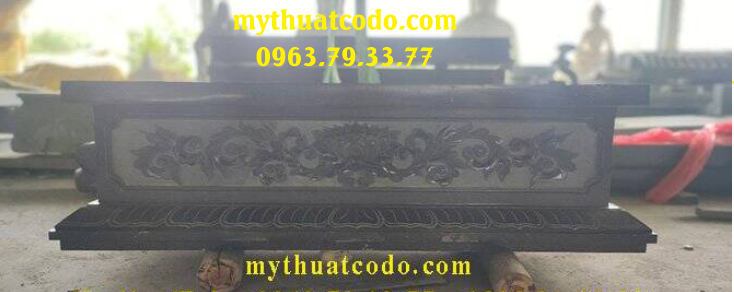 * Phần đế bình phong (cuốn thư): Được làm từ đá khối, thiết kế theo kiểu chân quỳ khắc hoa lá hoặc cung T.