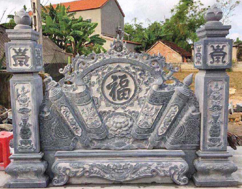Bình phong Đá (Cuốn thư Đá) do Công ty Mỹ thuật Cố Đô chế tác từ đá granite là biểu tượng phong thủy và nghệ thuật kiến trúc tâm linh, ứng dụng rộng rãi trong nhà thờ họ, lăng mộ, đình chùa.
