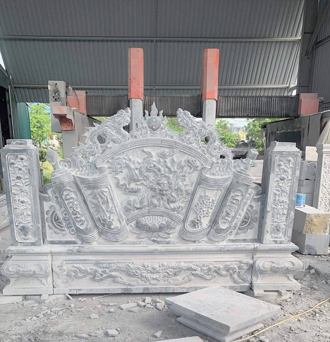 Trong không gian kiến trúc tâm linh của người Việt, Bình phong Đá là một hạng mục không thể thiếu. Được chế tác tinh xảo từ đá granite nguyên khối bởi đội ngũ nghệ nhân của Công ty Mỹ thuật Cố Đô, sản phẩm này không chỉ mang giá trị thẩm mỹ cao mà còn chứa đựng ý nghĩa phong thủy sâu sắc.
