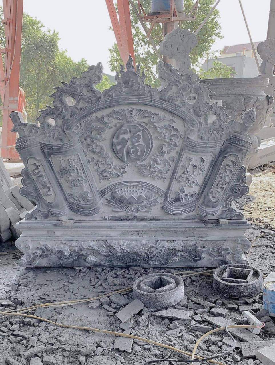 Bình phong Đá được đặt trước cổng hoặc cửa chính nhằm che chắn và hóa giải những luồng khí xấu, bảo vệ sự thanh tịnh cho không gian thờ tự.