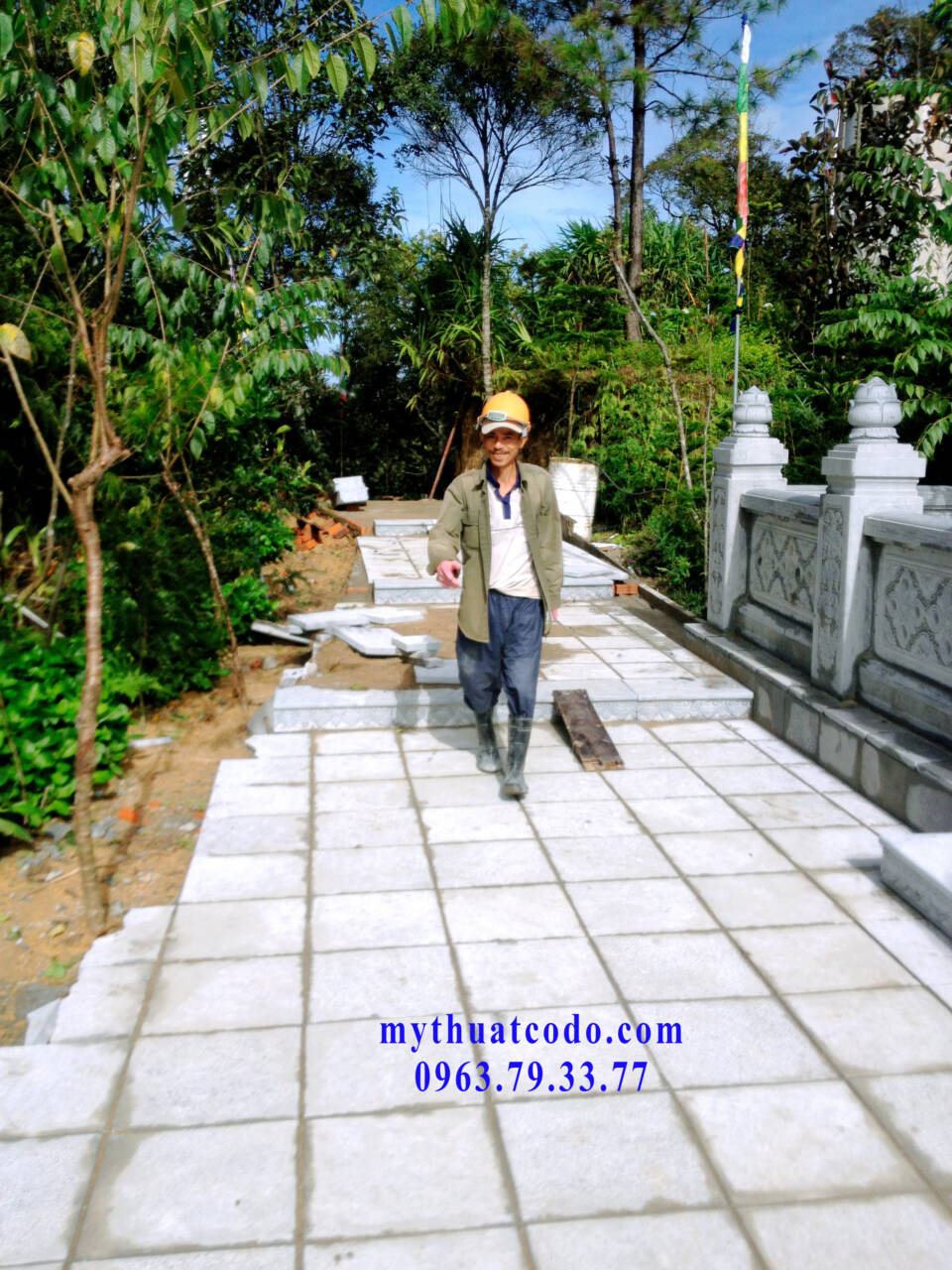 Tên dự án: Thi công và lắp đặt hệ thống Đá bậc cấp, lan can, cổng Chùa và cổng đá tự nhiên