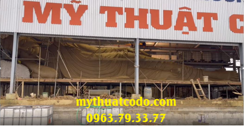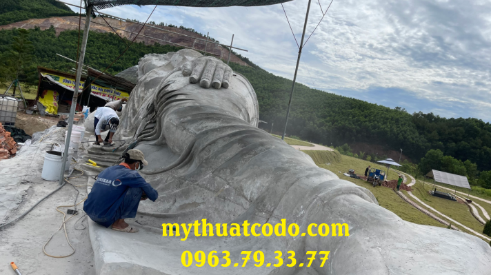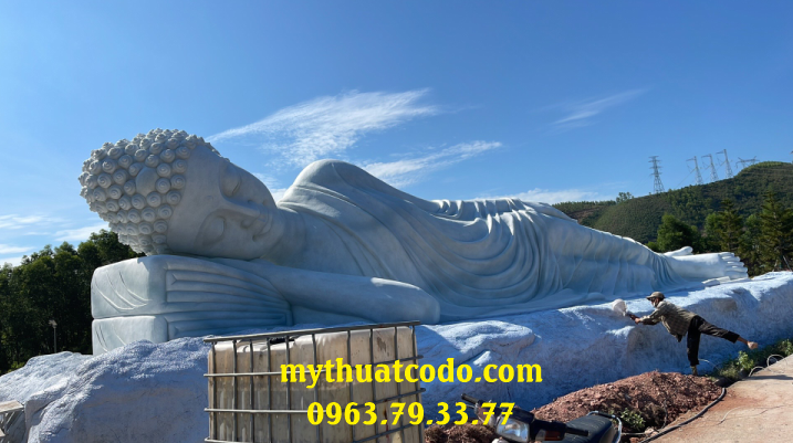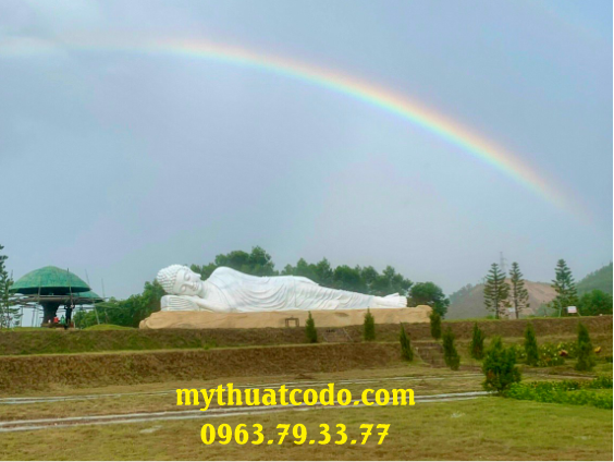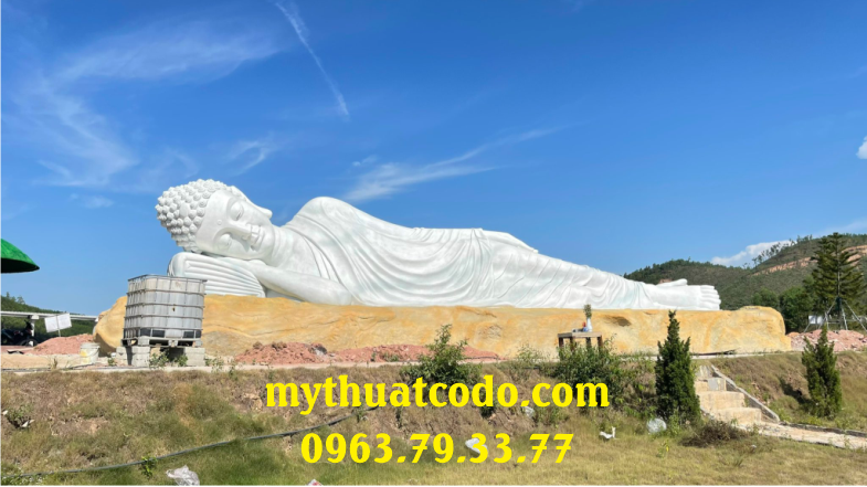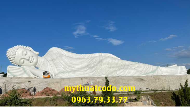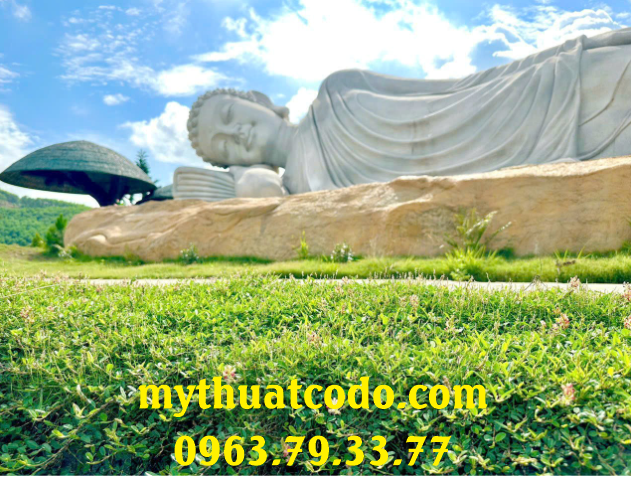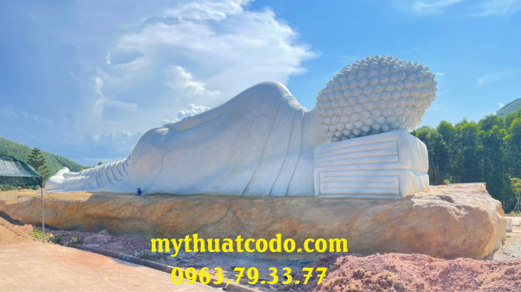 Tượng ngài Thích Ca Mậu Ni nhập Niết bàn dài 18m, chất liệu bê tông cốt thép, do Công ty Mỹ thuật Cố Đô thực hiện. Đây không chỉ là một tác phẩm điêu khắc quy mô lớn mà còn là biểu tượng của sự an lạc, từ bi và trí tuệ trong Phật giáo, góp phần làm nên dấu ấn văn hóa – tâm linh cho vùng đất Cố đô.