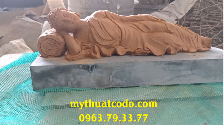 + Tượng được phác thảo chi tiết bằng đất sét, tái hiện hình ảnh Đức Phật nhập Niết bàn với thần thái an nhiên, từ bi.